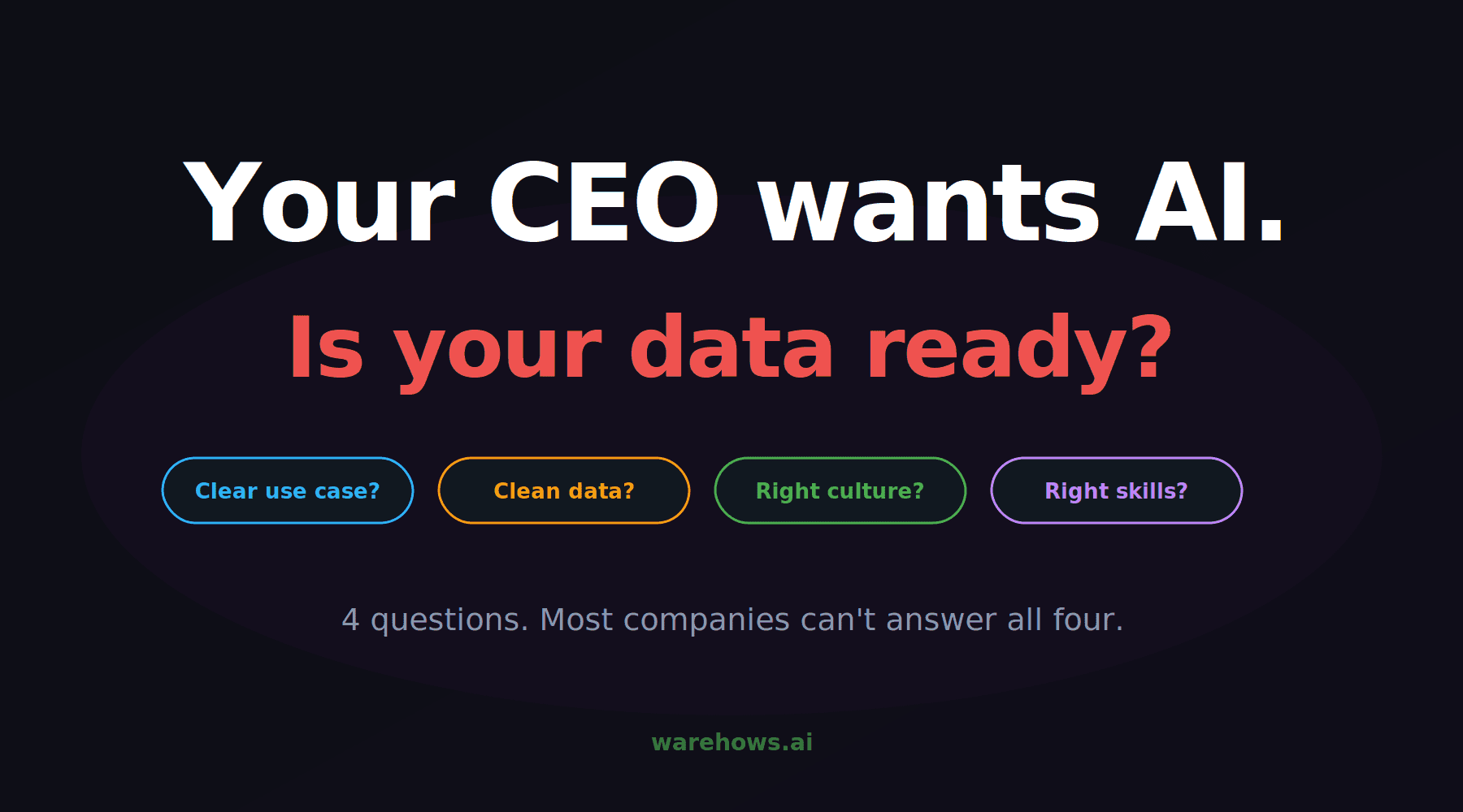 We've built AI on data at enough companies to know what separates the ones that ship something useful from the ones that spend six months and end up with a prototype nobody trusts. It comes down to four questions — and most companies can't answer all four honestly.